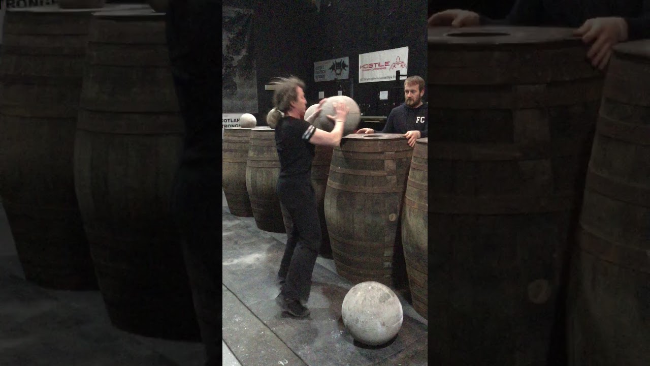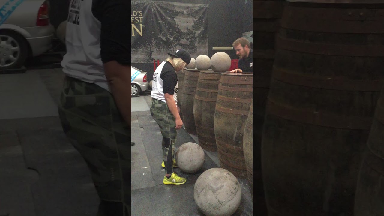 Mary Caroline Anderson from Tranent, Scotland, loading five of the Ardblair Stones at Hostile Strength & Conditioning Gym on ...