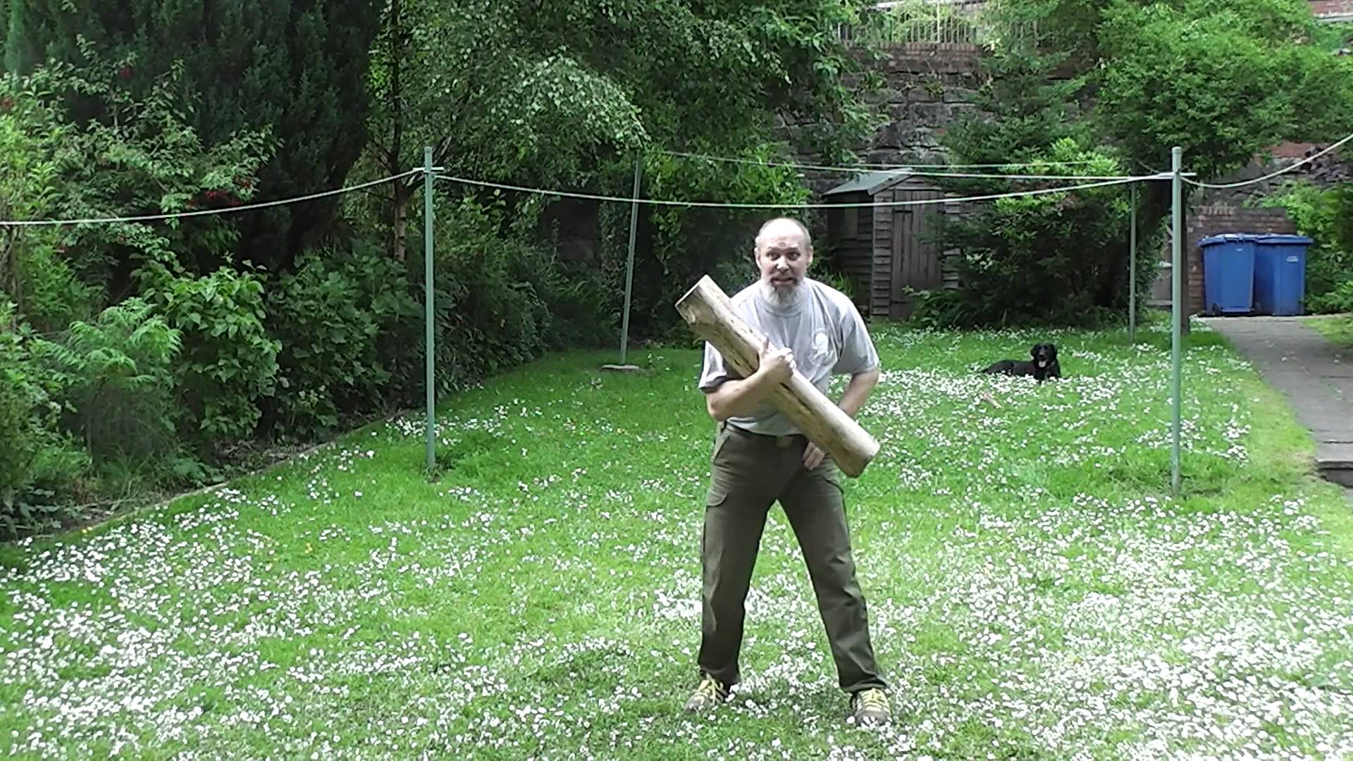 Some strength exercises using short log. ...